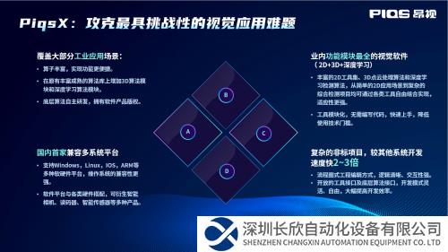 昂视经过多年的研发和深入打磨,推出的PiqsX机器视觉软件,基于强大的自有图像算法和优化的架构设计,整合了2D/3D/深度学习等各类视觉检测工具,能够快速实现识别、定位、测量、检测等视觉方案,致力于“一站式”解决客户的视觉应用难题,满足客户当下和未来的各类视觉需求,实现机器视觉软件的进口替代。