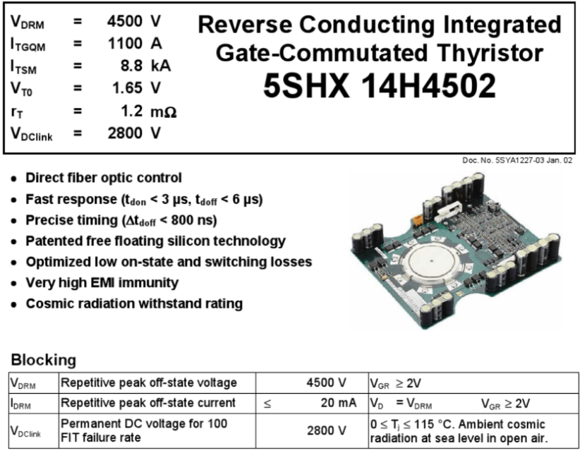 5SHX14H4502 ABB 反向传导集成栅极换向晶闸管