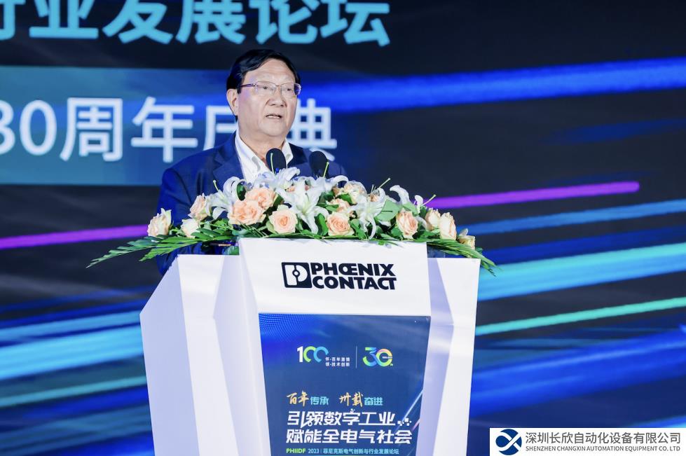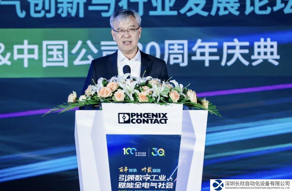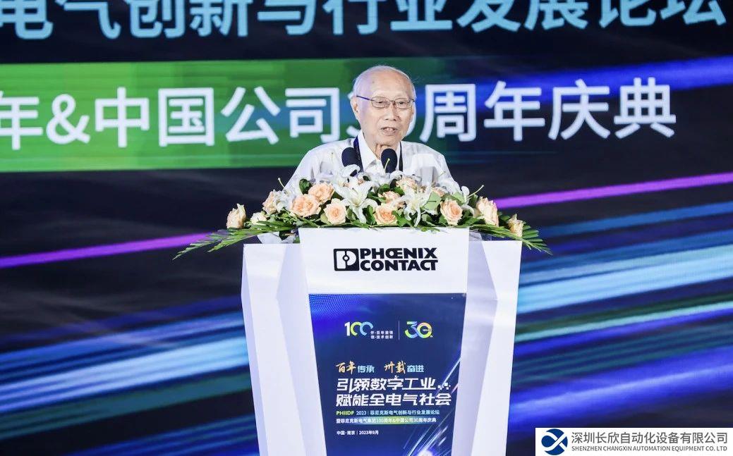 中国机械工业联合会专家委员会名誉主任朱森第表达对菲尼克斯电气的敬意和祝贺。连接是菲尼克斯电气对工业社会的一大贡献。菲尼克斯电气连接人与技术,连接智能制造和互联网,连接现在和未来,追求连接的极致,为中国现代化贡献力量。