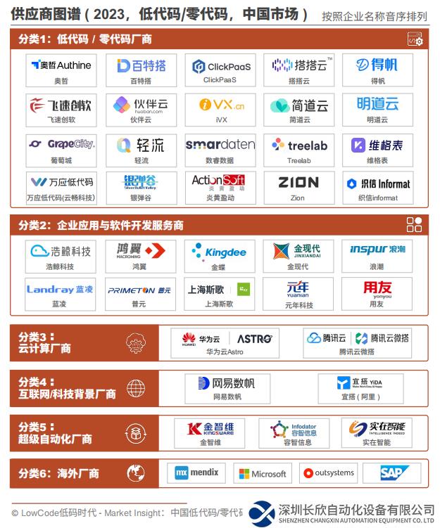 超级自动化厂商:RPA公司在构建超级自动化战略时,会将低/零代码能力纳入产品矩阵,低代码/零代码的应用主要体现在自动化场景中(如流程编排、界面编排、BI报表等)。