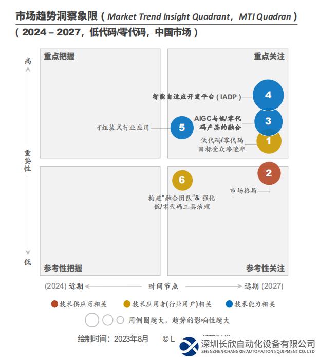 越来越多的供应商会将AIGC融入低/零代码产品,预计至2027年,约70%~80%的用户将使用具备AIGC能力的低/零代码产品。