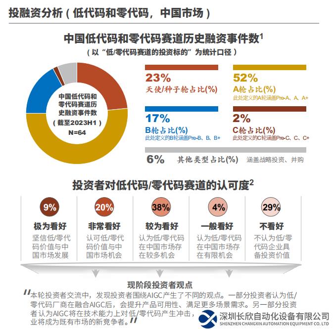 从融资轮次来看,多数厂商处于早期创业阶段。行业中不乏大型科技公司或IT企业收购低/零代码厂商的案例(如用友收购APICloud、字节跳动收购黑帕云)。虽然现阶段低代码/零代码赛道的资本热度降低,但随着融合了AIGC的低/零代码产品竞相落地,资本市场或将在一定程度上回暖。