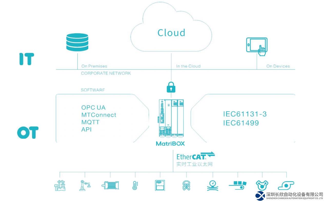 这套全国产边缘智能控制系统原生支持IT和OT的融合,由覆盖从设备级到整厂级的新一代可编程控制器MatriBOX和边缘计算系统MatriX Factory组成,在满足逻辑控制、运动控制等传统工业控制需求的同时,可以满足工业现场海量异构数据的实时高频采集、清洗、结构化、存储、AI推理计算等需求。并且,开发环境符合IEC61131-3和IEC61499标准,支持多种工业通讯协议和云边端交互协议,工业现场的应用可以从传统PLC向新一代边缘智能控制系统平稳过渡。