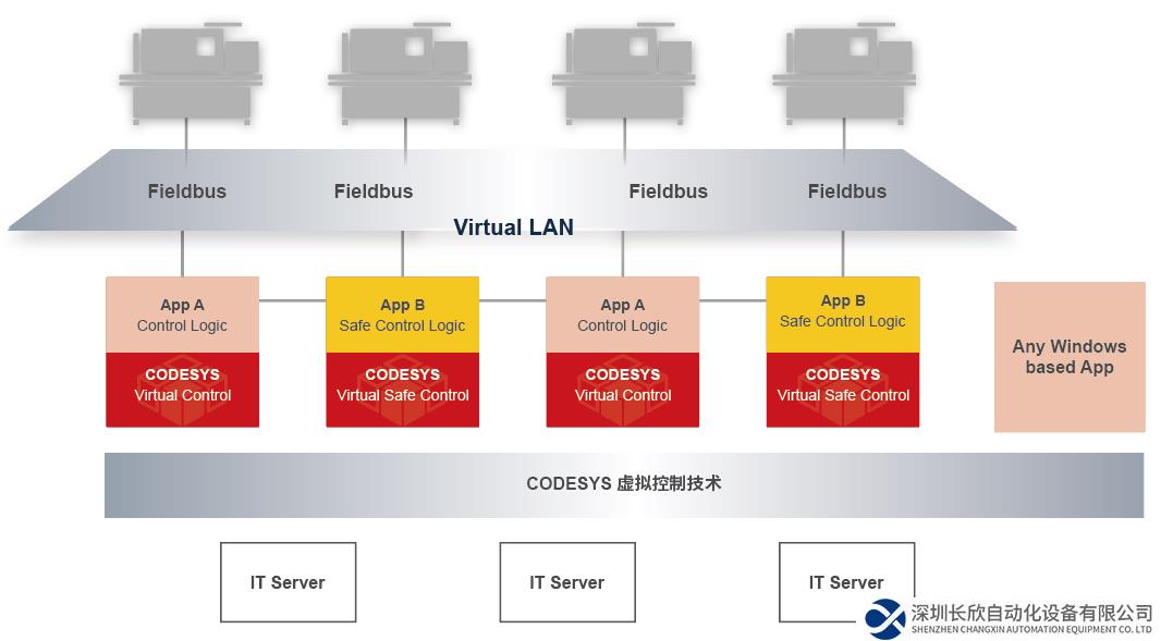 CODESYS 虚拟控制解决方案根据客户在稳定性和实时性等方面的需求,既可以在传统控制器(PLC)中部署运行,也可以在边缘计算单元、私有云或公有云服务器中部署运行,实践了“硬件平台提供算力资源,软件系统定义智能算法”的理念。