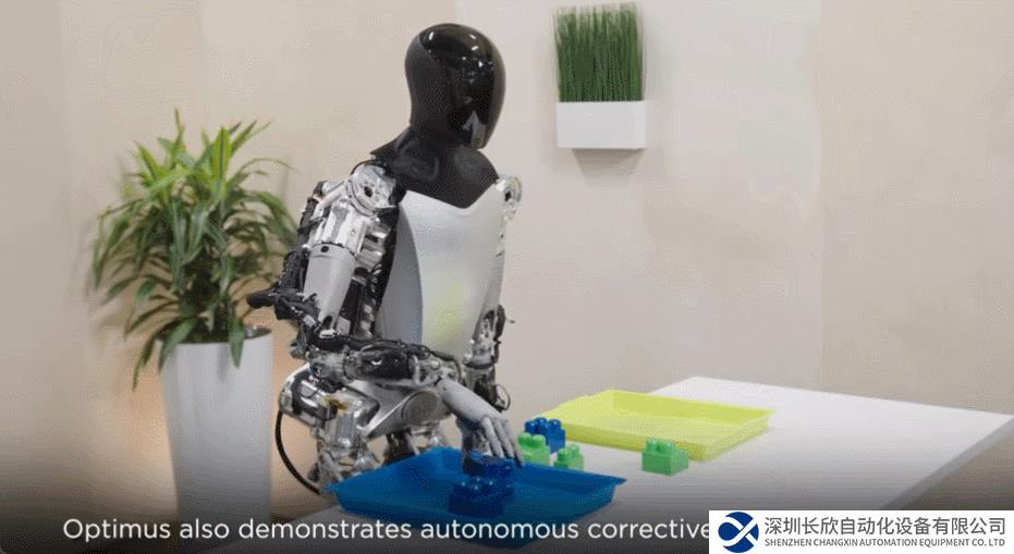 Optimus 还展示了自主纠正(将歪倒的物体摆正)的行为能力。