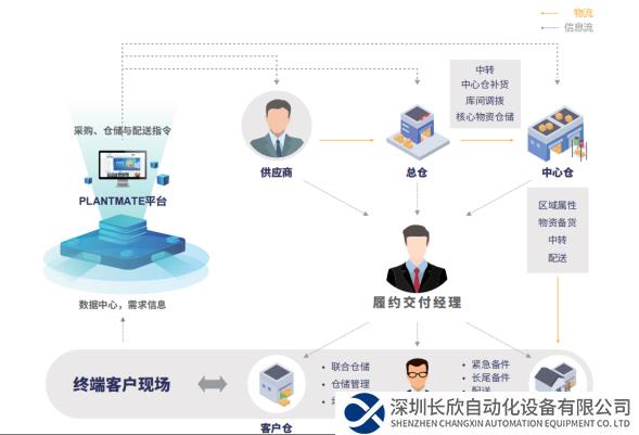 三级仓储服务体系作用于接收到客户需求后,协调三级仓进行发货。前置仓会给客户直接发货,同时通过数据中心进行需求分析和优化。如果发现备件缺货,PLANTMATE将通过EDI获取供应商库存数据,并及时为三级仓补货。