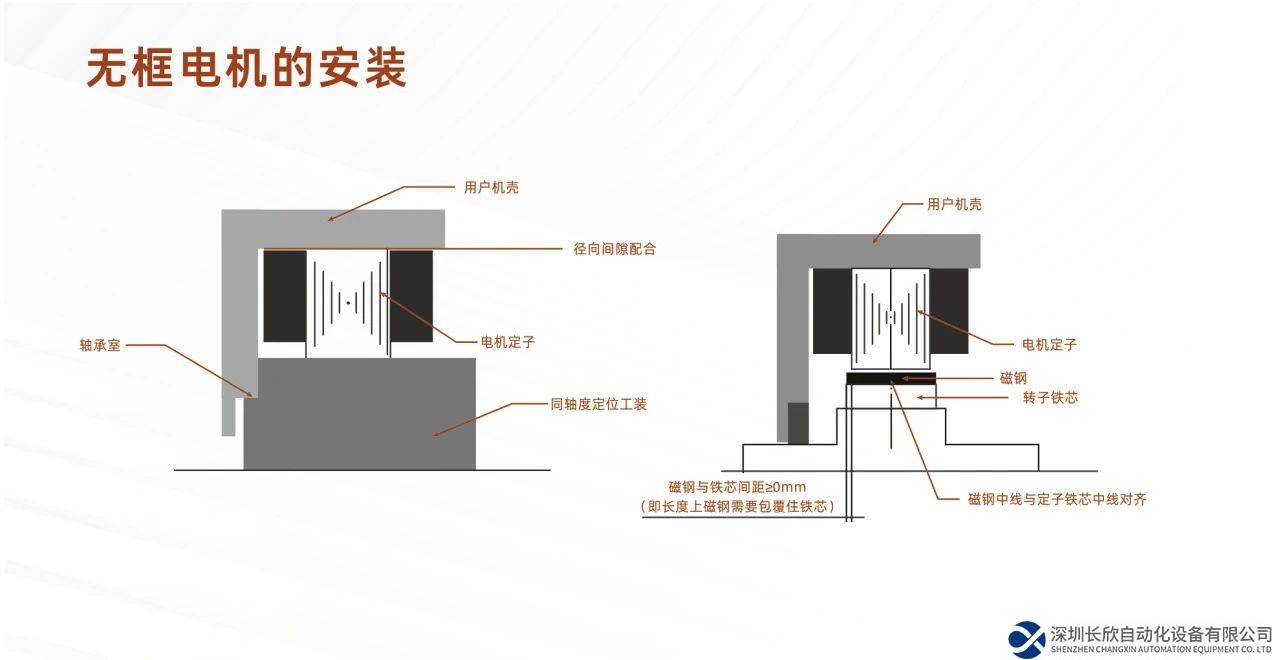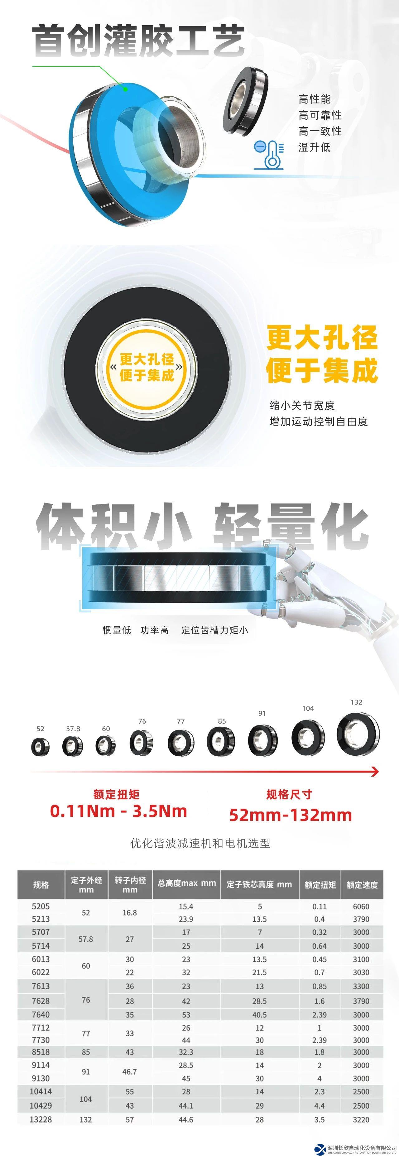 综上,无框电机与传统伺服电机有着各自的特点和优势,在不同的应用场合需根据实际情况而定。无框电机主要为体积小、性能强的应用场景提供动力解决方案,同时可以在减轻重量、减少所需安装空间、减少部件数量的同时,无须担忧将无框电机安装到应用中的难度。