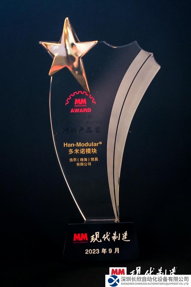 MM现代制造杂志依托弗戈全媒体平台,针对当前自动化、数字化行业和市场热点产品,启动“智能创新系列评选活动”,评选出“创新产品奖”获得者——浩亭技术集团Han-Modular®多米诺模块,并在2023年9月18日在上海举办的“第十八届MM现代制造新自动化论坛”上举办了隆重的颁奖典礼。