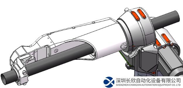 小臂贯穿式中空设计,贯穿孔径达57mm,外围管线内部布置,干涉空间更小,可达区域更广,更加方便客户使用。