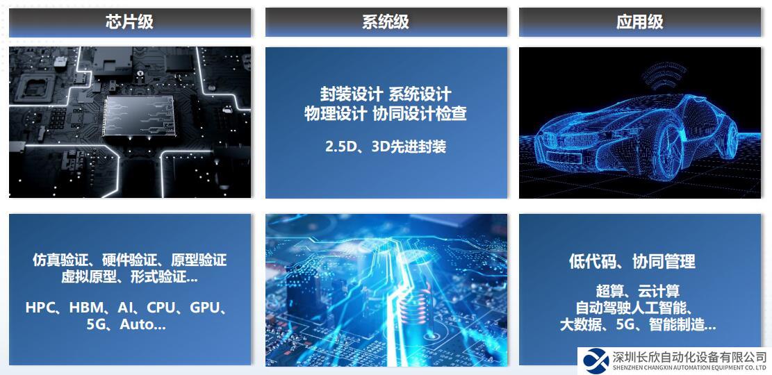 孙晓阳介绍到,合见工软从芯片的设计验证切入EDA,到系统级封装设计,再到应用级,进行全面布局。