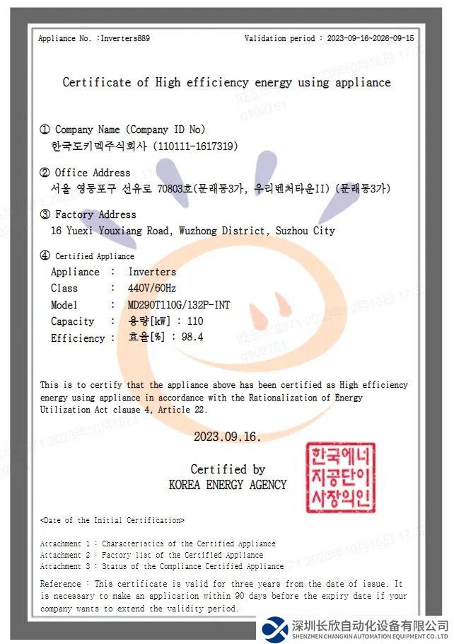 Emark认证是一种高效能源认证,只要符合政府宣布的能源效率和质量测试检验结果的特定标准以上的用能设备产品,就可以获得Emark认证。2023年,韩国电力将提供高效变频器补助金185.45亿韩元(约合14MUSD)。在政府利好政策的推动下,终端在选用变频器产品时,优先选用带有Emark认证标志的产品。这也意味着,在未来的市场竞争中,只有具备Emark认证标志的产品才能获得更多客户的信任和支持,赢得更多市场份额。