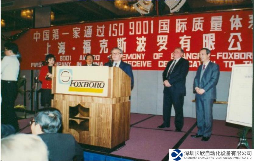 1991年12月,Foxboro中国公司取得了一个历史性的突破——成为中国首个获得ISO 9001国际质量合格证书的企业,为缩短我国仪表行业乃至工业领域与国际先进水平的差距做出了标杆性贡献。在随后的几年里,来Foxboro工厂参观交流的企业络绎不绝,同时工厂质量体系方面的专家也陆续到全国企业进行交流分享。这些经验帮助了越来越多的企业通过国际质量体系认证,为他们以后走出中国、打开全球市场奠定了基础。