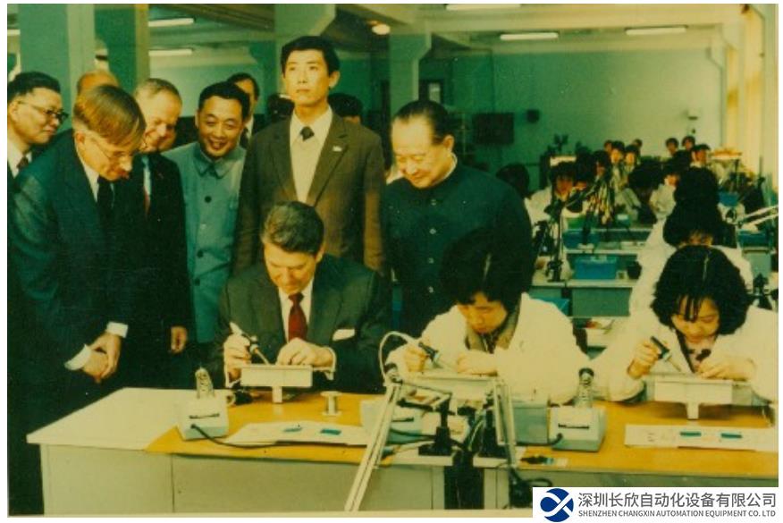 1984年4月30日美国总统里根访问公司 在装配车间焊接线路板