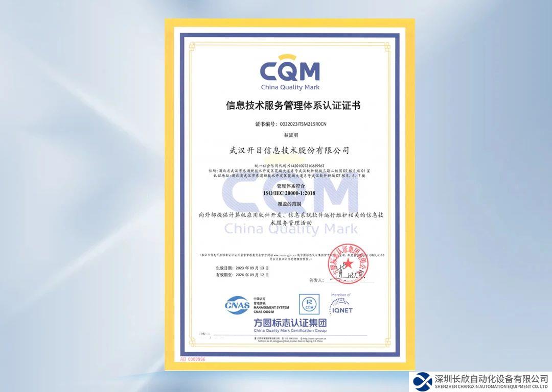 此次通过ISO20000体系认证,标志着开目软件已构建成包含组织架构、服务管理流程、IT支撑系统和IT服务管理信息的一体化管控体系,具备输出安全、可靠、高效的IT服务综合实力,IT管理和服务水平迈上了一个新台阶。