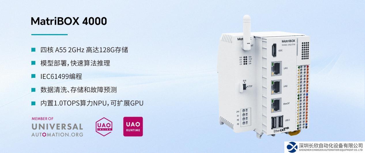 看点一:矩控新辰此次将在德国SPS展会上重磅展出集成1.0TOPS算力NPU(神经网络处理器)的边缘智能工业控制器----MX 4000系列,该产品支持IEC-61131-3和IEC-61499标准,集成了逻辑控制并将AI与机器学习引入工业控制,结合客户实时生产场景中的海量数据,使工业智能的实现成为可能。