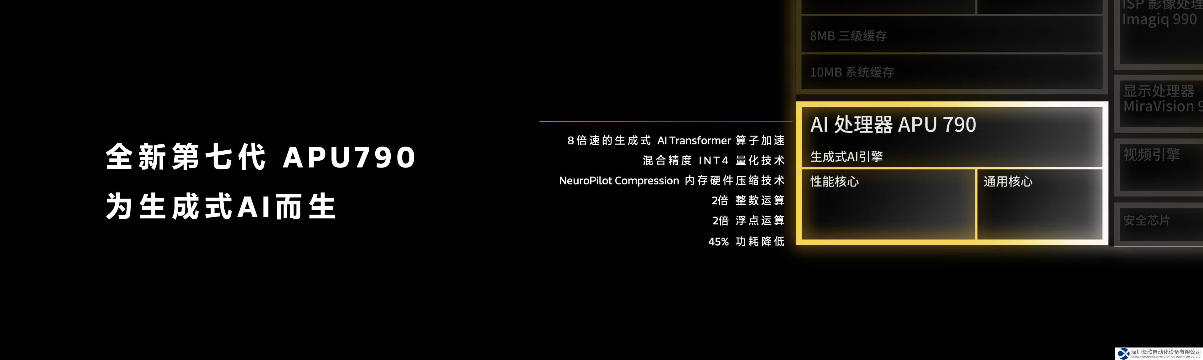 不仅如此,APU 790还内置了首款硬件级生成式AI引擎,带来又快又安全的边缘AI计算,深度适配Transformer模型进行算子加速,处理速度是上一代的8倍,AI生成图片快到只需要1秒。