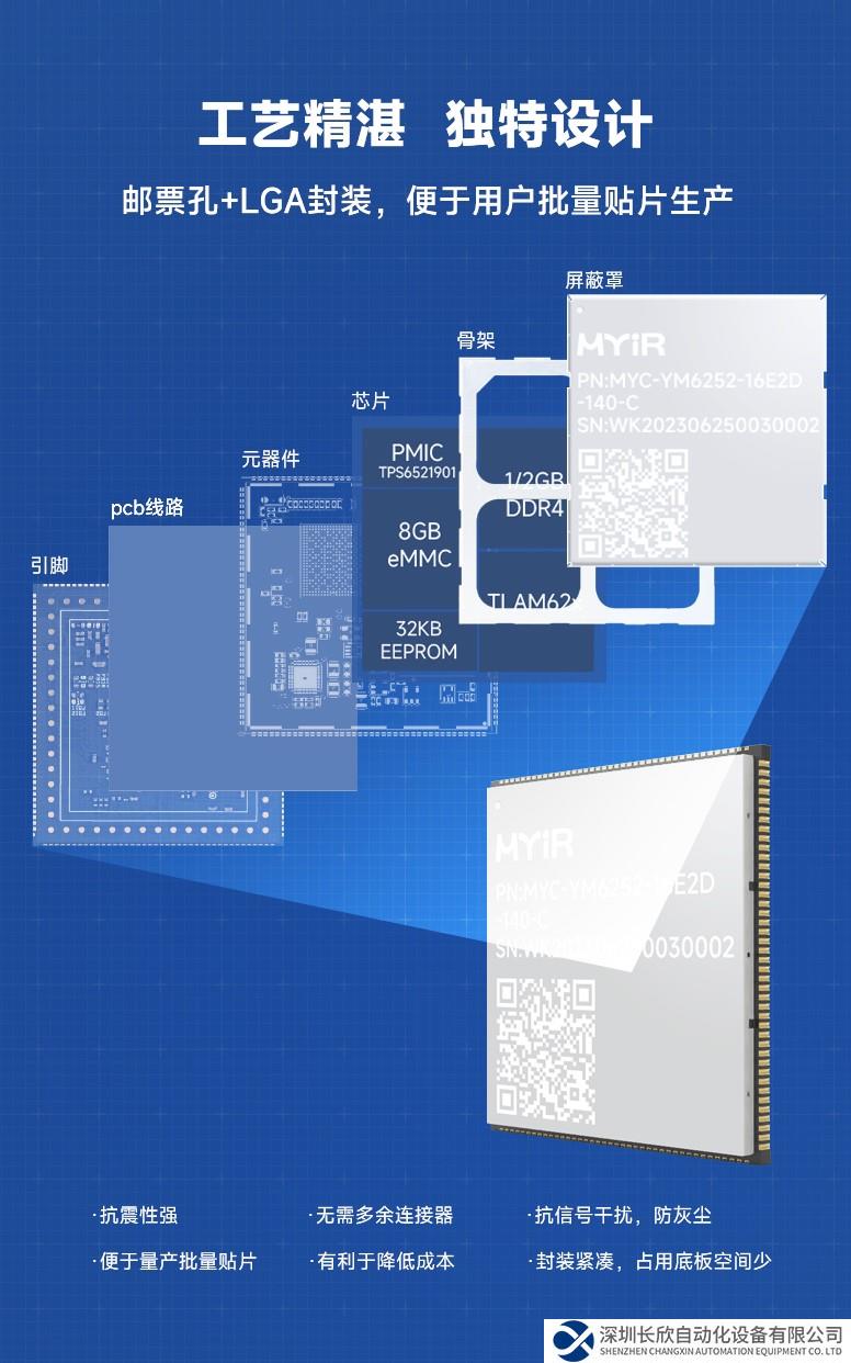 米尔AM62x核心板小巧,设计灵活,邮票孔+LGA设计
