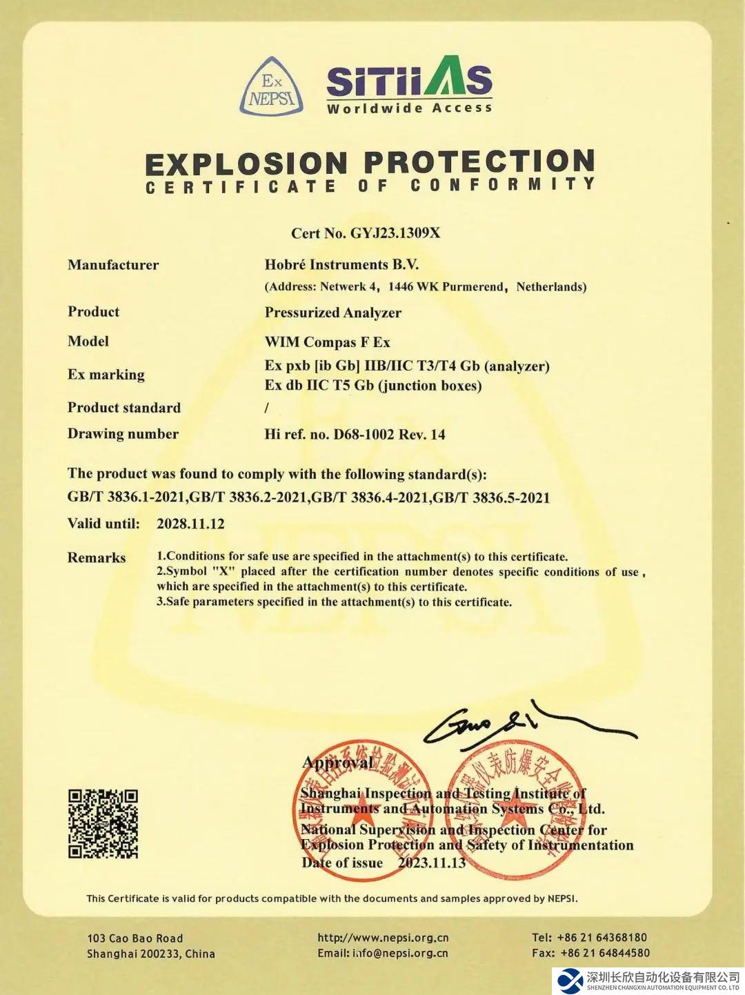 近日,中控技术全资子公司Hobré International BV(以下简称“Hobré”)自主研发的WIM COMPAS分析仪顺利通过国家级仪器仪表防爆安全监督检验站(NEPSI)认证,这一重要里程碑标志着Hobré在自主核心技术、产品研发设计以及标准化方面取得了新的重大突破。这也是继满足欧盟ATEX防爆产品/体系认证以及其他国际防爆认证体系后,WIM COMPAS分析仪在国内市场获得的高度认可,进一步符合了中国的安全法规要求,为公司在高端装备领域的探索和发展注入了新的动力。