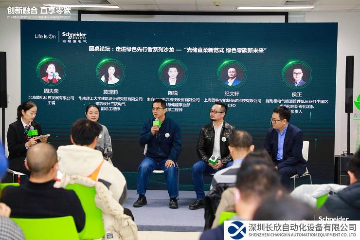 此外,行业聚力打造“共享、交流、共赢”的市场氛围,共同推动产业低碳发展在绿色背景下也显得尤为重要。在“走进绿色先行者”圆桌论坛环节,施耐德电气能源管理低压业务中国区战略和创新孵化团队负责人侯正与来自华南理工大学建筑设计研究院有限公司建筑设计三院电气副总工程师莫理莉、南方电网电力科技股份有限公司新能源与储能事业部资深工程师陈锐、上海固特安能捷低碳科技有限公司CEO纪文轩等多位嘉宾齐聚一堂,共话新型电力系统下“光储直柔”技术的现状、挑战、未来以及对于泛建筑领域降碳的重大价值,以实际行动凝聚共识,加速促进行业发展。