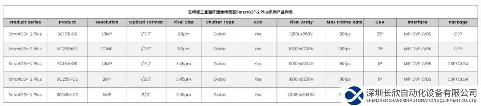 在SmartGS®-2 Plus技术的加持下,思特威在2021年开始布局工业用面阵图像传感器系列产品,并不断推出业界领先的高性能产品,如最新SmartGS®-2 Plus技术产品SC535HGS,具备低噪声、5MP高分辨率、高量子效率(QE)、高满阱电子(FWC)四大特点,可大幅提高高端机器视觉应用对高速移动零件的检测能力,实现在低照度环境下的高质量图像捕捉,提高生产效率。