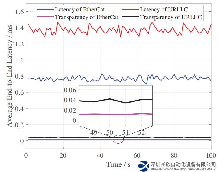 针对上述挑战,团队设计了基于工业5G的无线空口协议栈和软件可定义的硬件架构,并开展了“人在回路”的机器人遥操作闭环反馈控制实验,评估了通信时延对控制透明性(Transparency)的影响。实验结果表明,研发的工业5G实验平台可以提供毫秒级通信时延和99.999%以上可靠性的通信指标,同时支持触感级无线遥操作,其透明性与有线遥操作近似。