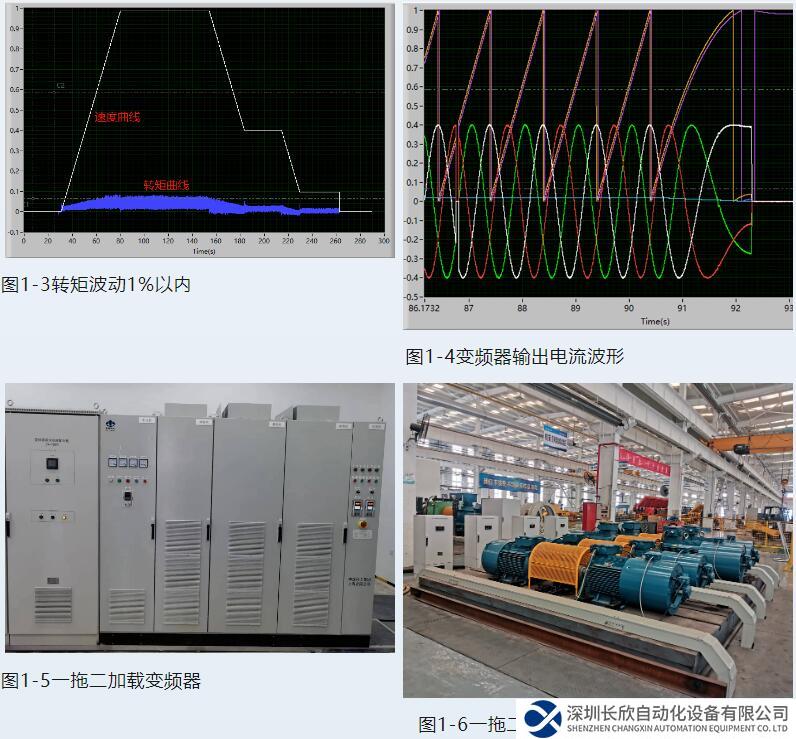 测试台对转矩精度要求较高,本次变频器转矩输出波动在±1.00%以内,转矩输出精确至0.01,提高转矩给定精度,变频器输出电流波形接近正弦波,各单元均流状态正常。