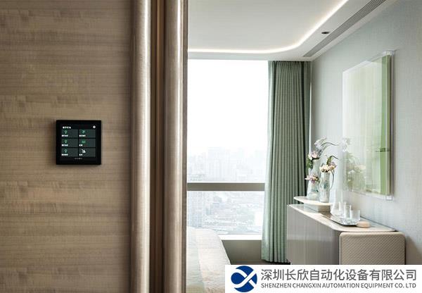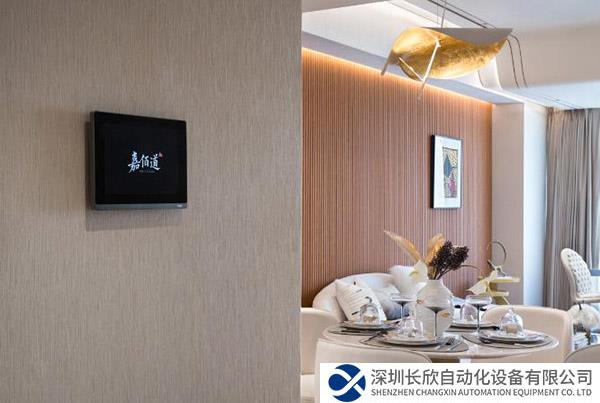 走进室内,住户可以进一步感受到智能家居系统的魅力。区别于以往客厅墙面上一整排用于控制灯光、空调、温湿度等等的杂乱开关控制布局,取而代之的是一块薄至8.5mm的4寸触摸屏。通常情况下,智能触摸屏保持息屏的状态,避免亮光带来的视觉突兀;而当用户靠近时,接近式感应技术才会点亮屏幕,滑动界面、轻轻点触,就能进入住户个性化定制的功能菜单,在实现对家中繁多的家居设备的轻松操控的同时,更让墙面视觉更加整齐美观。此外,为了完美地将科技感融入嘉佰道的设计风格,施耐德电气此次特别定制了星耀黑配色,更是于细微之处展现精致点缀。嘉佰道项目采用的是施耐德电气旗下目前最高端的产品线——珍铂系列KNX智能家居解决方案。珍铂智能开关在上市前要经历包括安全性测试、稳定性测试在内的严格实验。