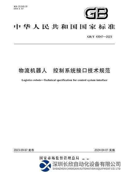 GB/T 43047-2023《物流机器人 控制系统接口技术规范》于2020年正式立项,2022年6月完成标准文本编制及评审工作,2023年正式发布。