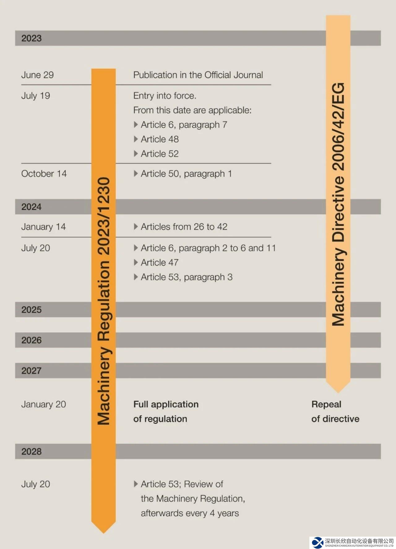 为应对欧洲数字化互联智能化机械的技术演进趋势,欧盟发布了新的机械安全法规Machinery Regulation(EU)2023/1230,它将取代现行的欧盟机械指令2006/42/EC,成为机械安全方面最重要的法律法规。在经过42个月的过渡期后,该法规将于2027年1月强制执行。
