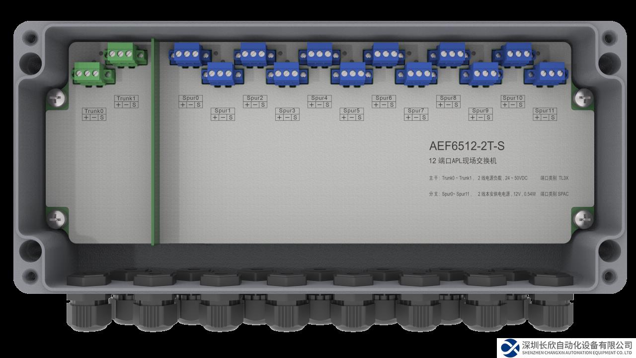 AEF6512是带有12个APL Spur端口的APL现场交换机。AEF6512及所连接的APL仪表所需电能均通过APL 主干(Trunk)回路获取,无需额外的配电电源。AEF6512的APL 分支(Spur)端口在和APL仪表通信的同时为APL仪表提供电能,每个分支都具备过流、欠压、过压和短路保护功能。