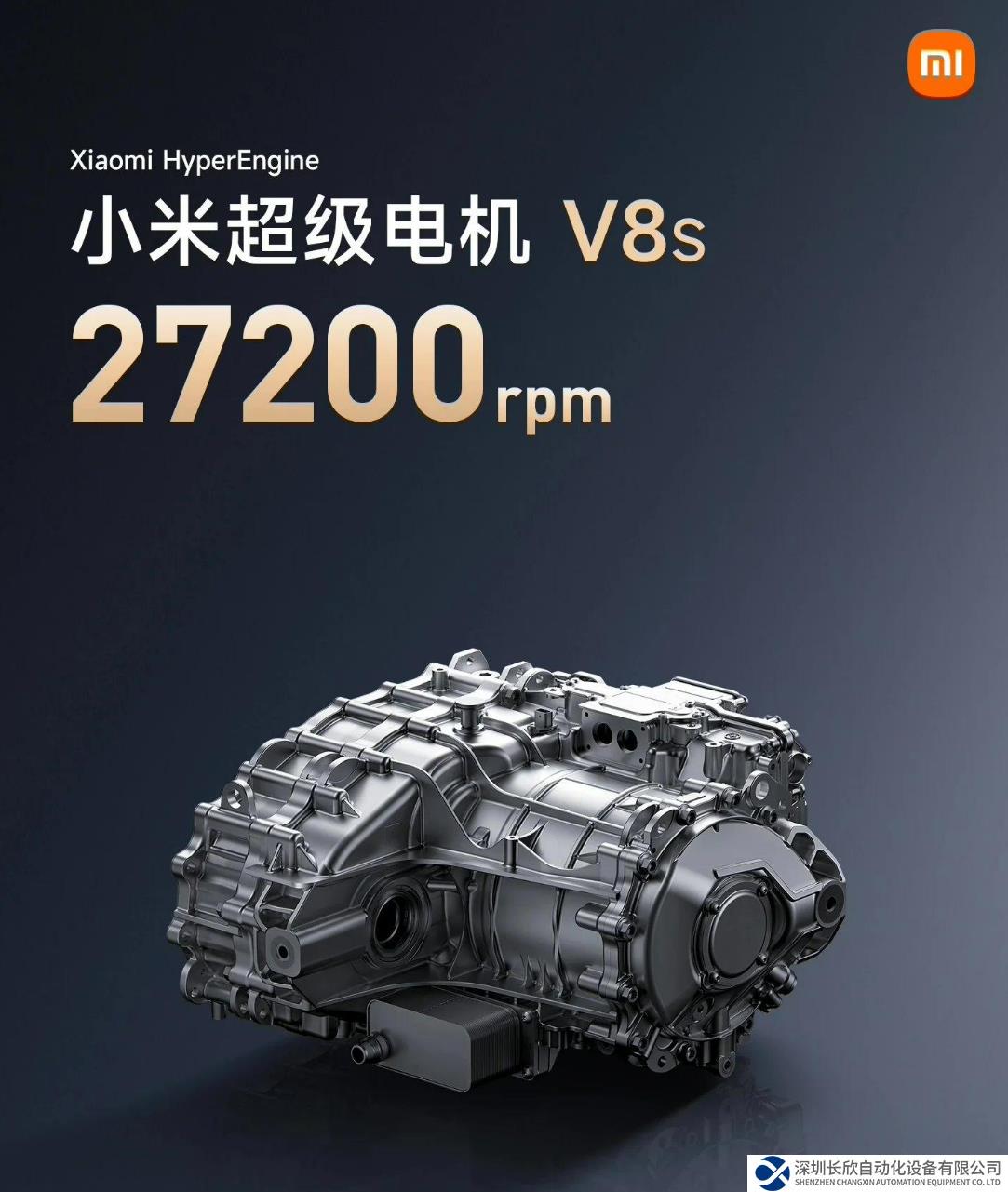 小米超级电机 V8s 号称转速达到 27200rpm 全球第一,拥有 578PS 最大马力、425kW 峰值功率、635N・m 峰值扭矩、98.11% 最高效率,电机功率密度可达 10.14kW /kg,将于 2025 年上车。