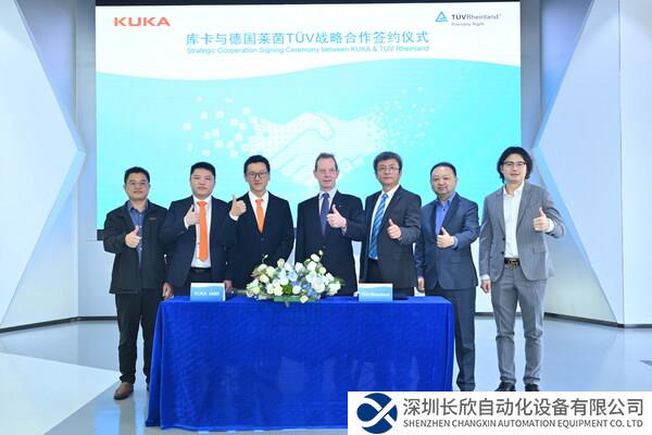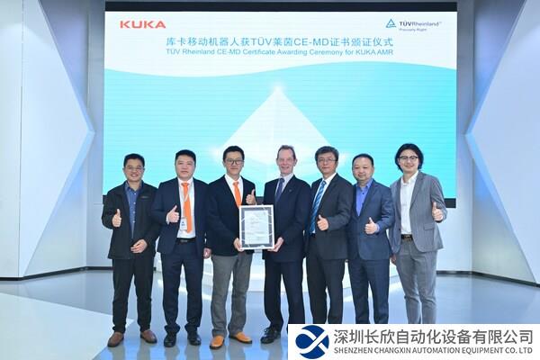 2024年1月19日,国际独立第三方检测、检验和认证机构德国莱茵TÜV大中华区(以下简称“TÜV莱茵”)与库卡机器人广东有限公司(以下简称“库卡”)举行战略合作签约仪式,并为库卡KMP 1500P潜伏顶升式自主移动机器人颁发了欧盟CE-MD机械指令符合性证书。