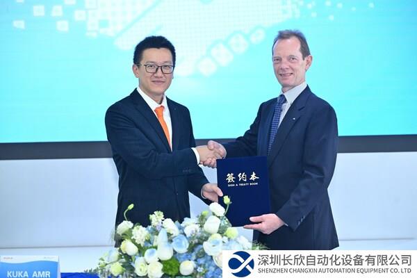 库卡移动机器人总经理马建良博士与TÜV莱茵太阳能与商业产品服务全球副总裁Frank Piller签订协议