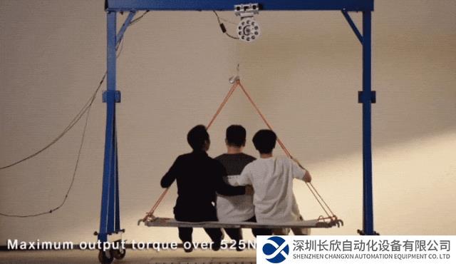 据介绍,该机器人有两个驱动器提供动力,一个型号为L28,能以张力750N、转速120mm/s以及0.02mm的定位精度拉动两块分别重25kg(共计100斤)的铁块上升;一个为D190,其额定输出力矩达到150Nm,最高输出力矩超过525Nm,最大转速超过110RPM(48VDC),可以拉动3位成年男性。
