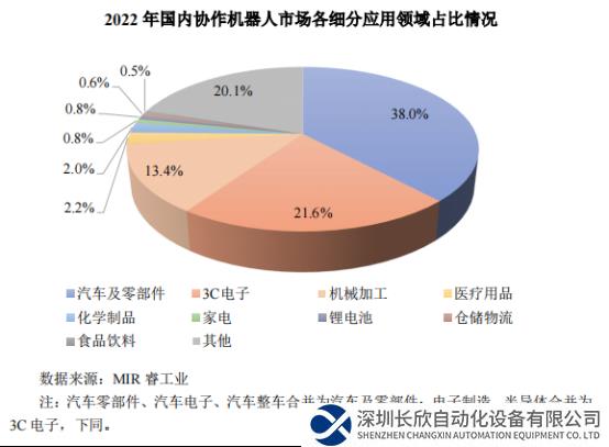 根据国际机器人联合会(IFR)数据,2022年我国工业机器人出货量达到29.03万台,占全球出货量的52.5%,连续十年位居全球第一。而在各类工业机器人中,协作机器近年来增长迅速。