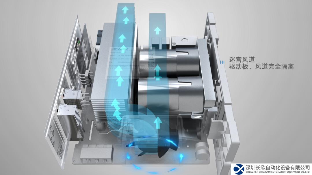 MD600采用迷宫风道设计,风道与驱动板完全独立,加上100%三防漆,有效防止杂质、粉尘等进入驱动板内部,保障在恶劣环境中的可靠运行。MD600还可自定义正反转,有效防止棉絮等异物堵塞风道。同时采用无驱风扇,风扇驱动集成在驱动板内部,增加易损件的可靠程度。