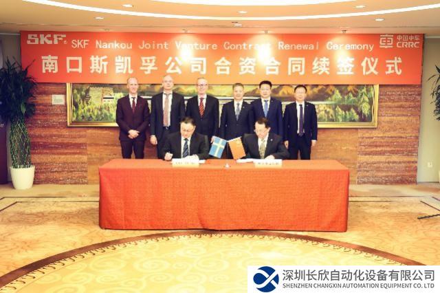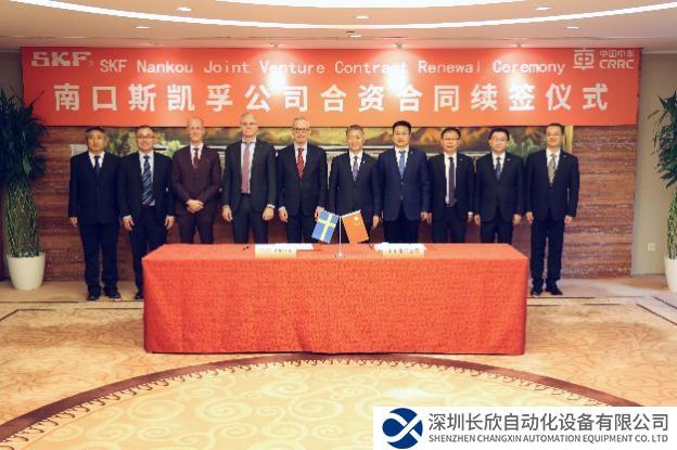 2月 27日,斯凯孚中国(SKF)与中车北京南口机械有限公司在中国中车总部举办北京南口斯凯孚铁路轴承有限公司延长经营期限签约仪式。瑞典驻华大使欧思诚、斯凯孚集团总裁里卡德·古斯塔夫森、中国中车集团总经理马云双应邀出席签约仪式,瑞典驻华使馆商务参赞乔凯,中国中车副总裁王锋、副总裁刘可安共同见证协议的签署。斯凯孚中国及东北亚总裁王辉与中车北京南口公司董事长陶逯代表双方签署协议。