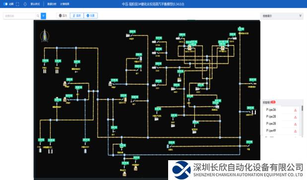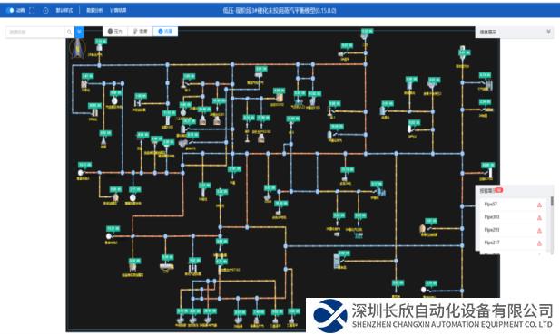 引入蒸汽管网在线模拟分析技术(IT),实时模拟中低压管网运行状态,并对异常管段(如蒸汽滞留、保温异常)进行实时报警提示,为调度运行提供指导。