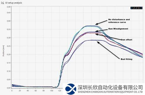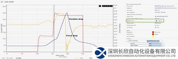 通过对力信号的额外分析来改进对焊点飞溅的检测,飞溅检测识别必须满足两个条件:力和位移必须在一定时间范围内下降(冗余信息), 不仅可以更精准地识别飞溅,而且可以识别出每个飞溅的大小,即可以对每个飞溅大小做量化判断,从而可以实现飞溅的自动优化降低。