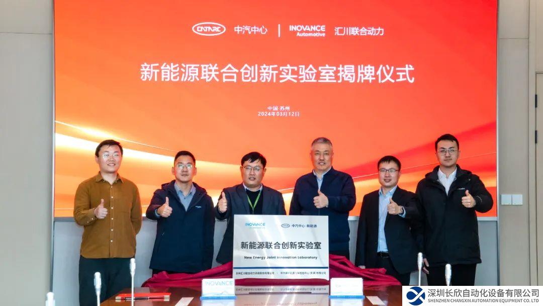 签约仪式上,中汽研新能源汽车检验中心与汇川联合动力正式签署了合作备忘录,双方代表共同为新能源联合创新实验室揭牌。这一实验室的成立,标志着双方将在新能源汽车电驱电控领域的研发验证、检验认证等方面展开深度合作,共同推动新能源汽车技术的创新与突破。