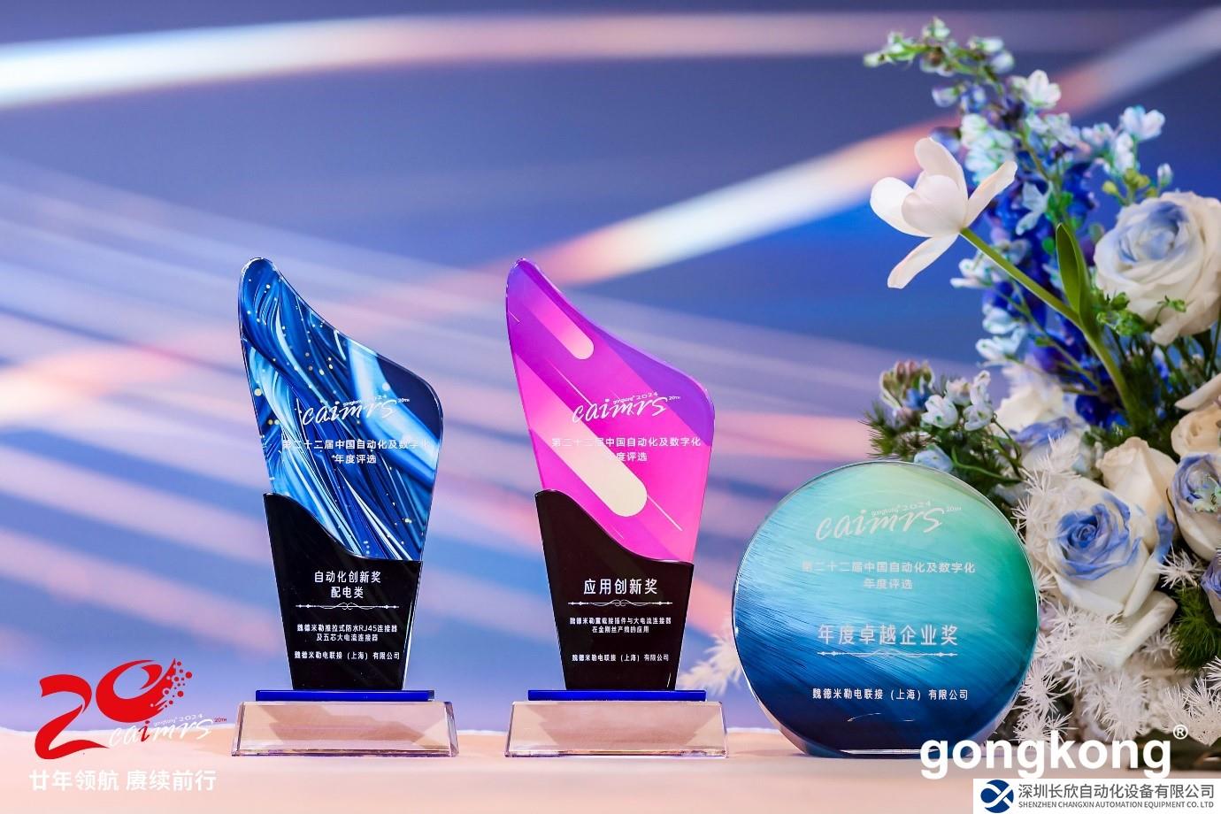 在这草长莺飞的三月天里,魏德米勒迎来了开年喜讯,在工控网第二十二届自动化及数字化年度评选中一举斩获三项大奖。凭借在工业自动化领域以及全方位提升并推动新能源产业发展的卓越表现,魏德米勒荣获“年度卓越企业奖”,同时旗下新品推拉式防水RJ45连接器及五芯大电流连接器荣获了“自动化创新产品奖”,重载接插件与大电流连接器在金刚丝产线的应用案例也将“流程智造创新应用奖”收入囊中。