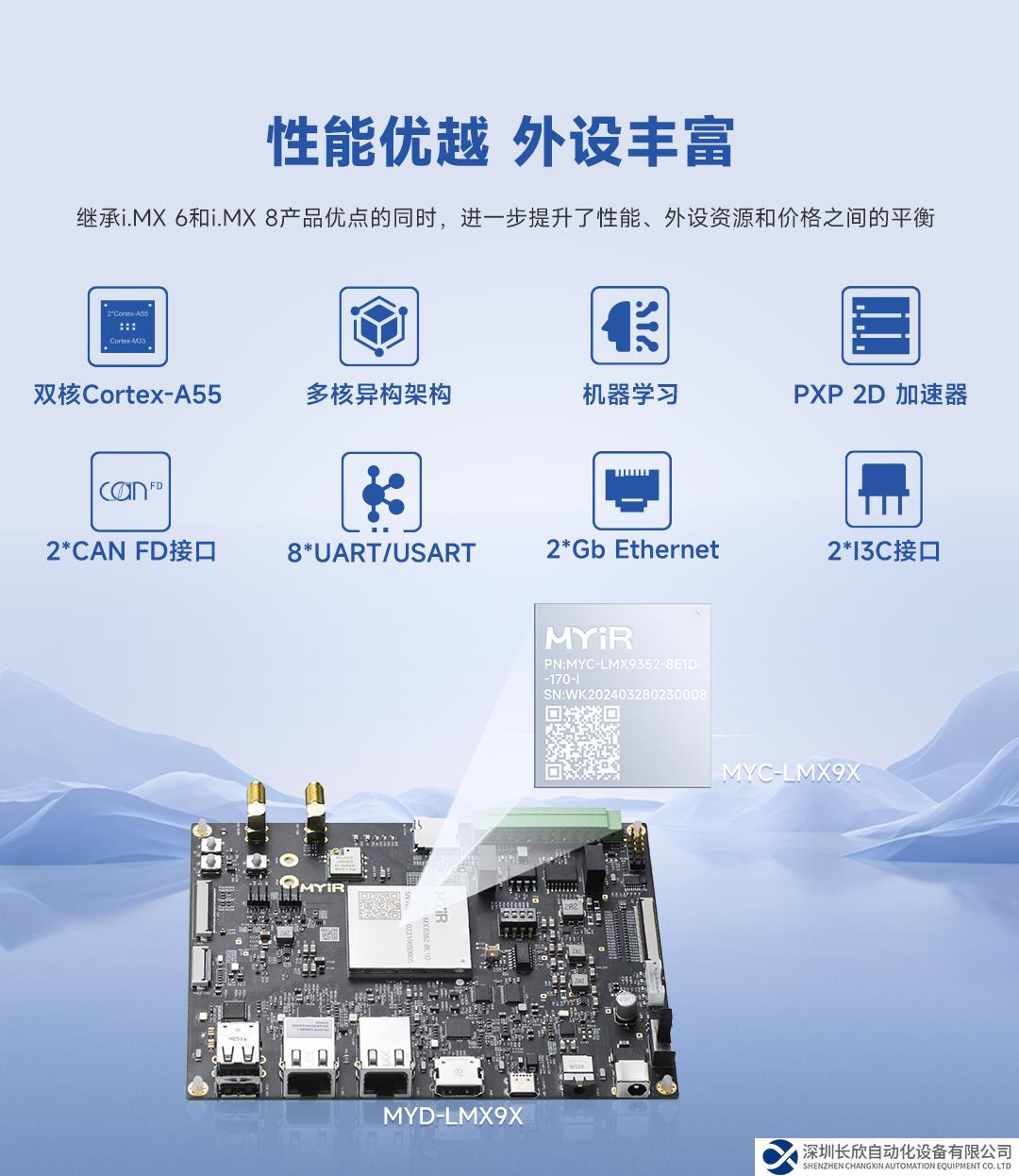 米尔NXP i.MX 9系列的核心板性能优越: