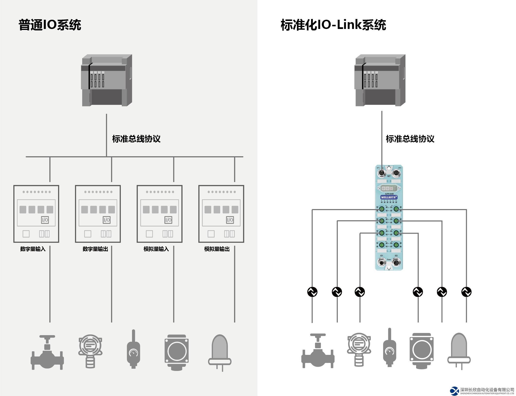 ① IO-Link是工业4.0传感器/执行器层的标准化IO连接技术(IEC61131-9),是独立于总线的通信协议,它通过点对点连接来自传感器和执行器的过程数据以及以需求为导向的参数化和诊断数据。