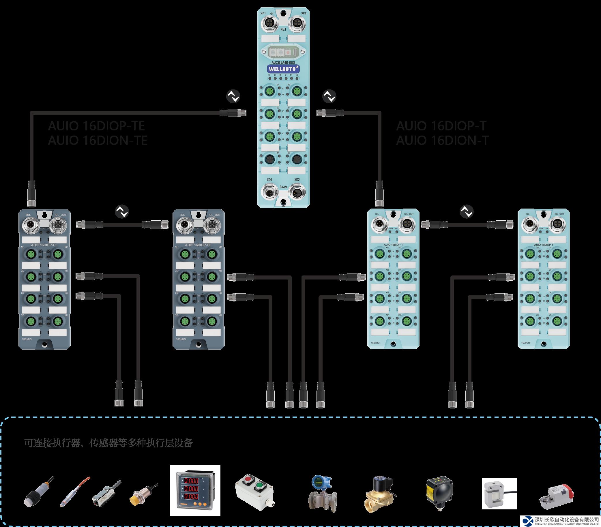 IO-Link两级扩展方案是一种高效、灵活且成本效益显著的自动化解决方案,适用于各种规模和复杂度的生产环境。更有效地整合和优化现有的生产设备和传感器网络,降低布线成本和维护成本。