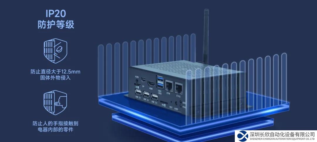 微型工控机T527,采用钣金外壳,达到IP20防护等级,适应性广泛,可直接应用于复杂工业环境,支持桌面安装和壁挂。