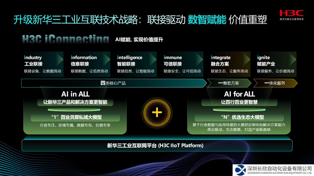 2022年,新华三集团基于多年来在百行百业的技术探索和应用实践,正式发布了H3C iConnecting工业互联网技术战略。今年,为了进一步推动AIGC与工业互联网技术的深度融合,新华三提出以“联接驱动,数智赋能,价值重塑”的创新理念,将iConnecting工业互联网技术战略再次全新升级。