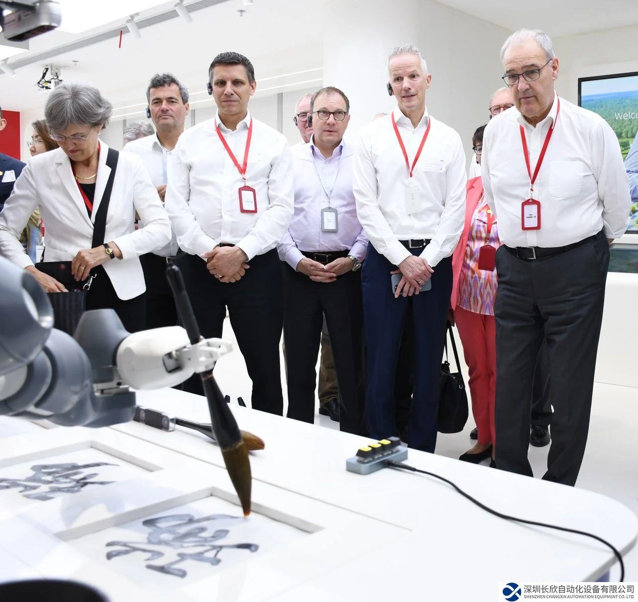 帕姆兰阁下一行还漫步了ABB机器人多媒体展厅及ABB工厂参观长廊,深入了解了ABB机器人最新产品系列、近距离观摩了超级工厂各产线,并与ABB YuMi在书法演示单元来了一场愉快的互动体验。