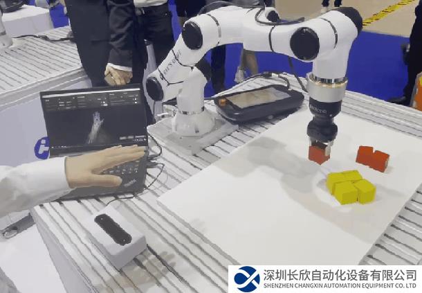 大族机器人体感控制应用,通过深度识别,使机器人末端实时跟随肢体动作进行运动,还可直接与多种外设(如夹爪、吸盘)实时互动,具有高度的灵活性。