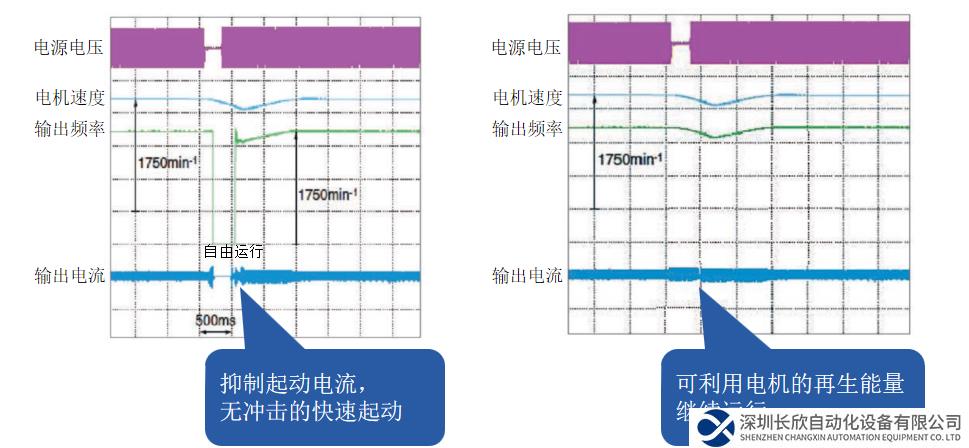在自由运行状态的电机也能轻松无振动启动。即使反转中的电机, 也可正常启动。