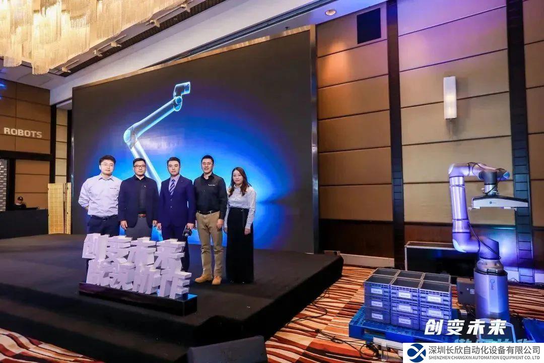 在大家对协作机器人未来世界充满憧憬的时候,也迎来了中国首秀的UR20的揭幕仪式。优傲机器人大中华区技术总监孙政华先生,优傲机器人大中华区市场经理陈妍伶女士,优傲机器人北区销售经理范炜先生,优傲机器人全国汽车行业大客户经理袁炼先生,优傲机器人全国OEM & Segment业务发展经理陈耀文先生共同上台为UR20揭幕。